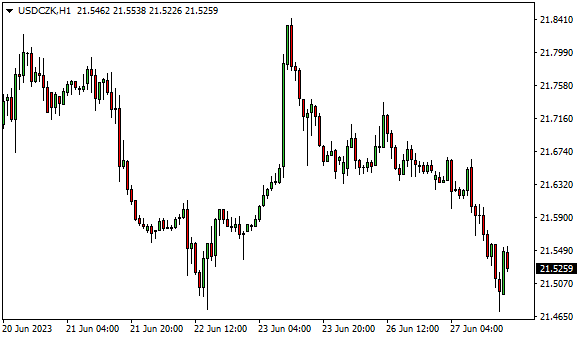 Vývoj měnového páru USD/CZK (1hodinový graf - H1):