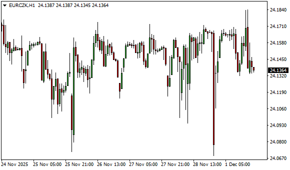 Vývoj měnového páru EUR/CZK (1hodinový graf - H1):