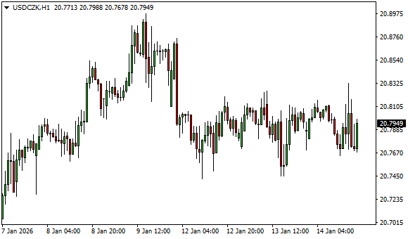 Vývoj měnového páru USD/CZK (1hodinový graf - H1):