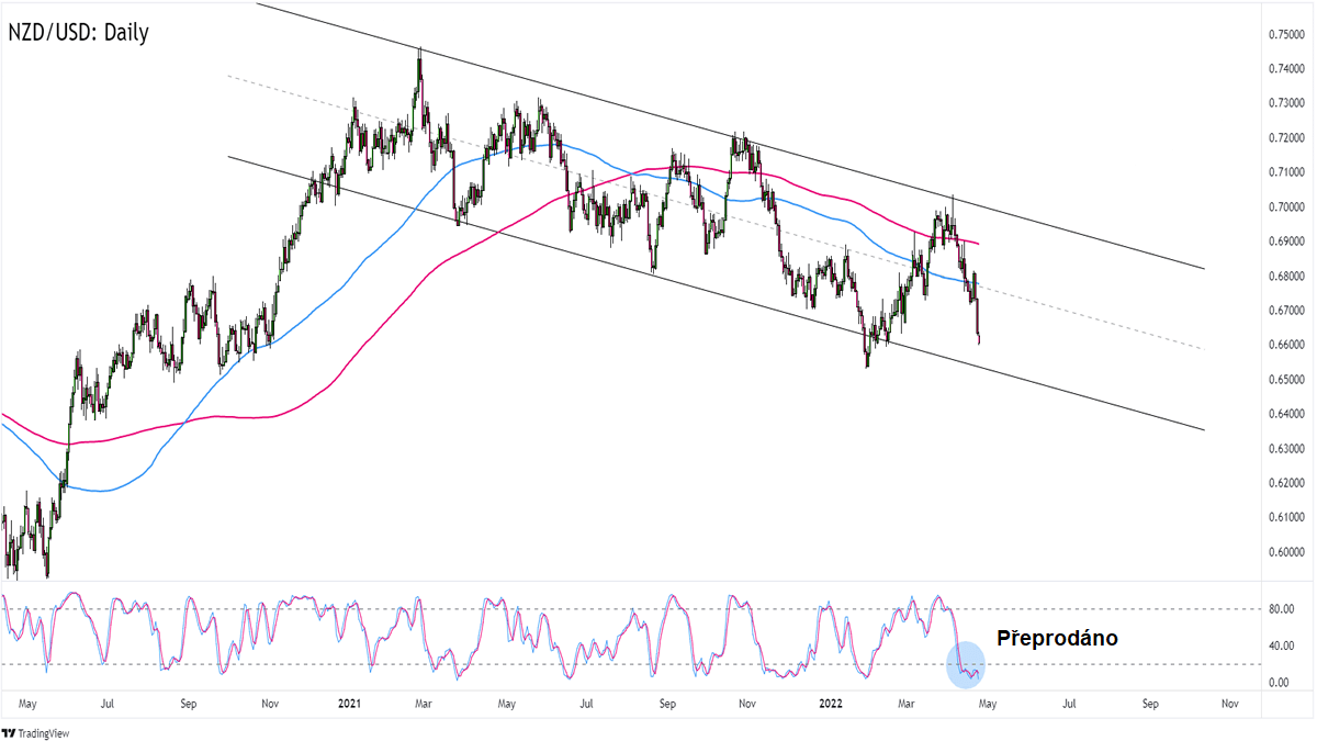 Klíčová slova: FOREX | NZD/USD | Indikátor | Měnový pár | Stochastic | USD | NZD | Babypips | Graf | Vývoj měnového páru | TradingView | Indikátor Stochastic | Denní graf | Přeprodané podmínky | Pokles | Vývoj | Další pokles |