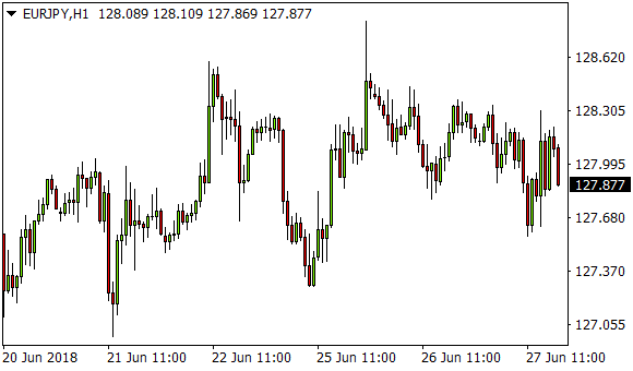 Vývoj měnového páru EUR/JPY (1hodinový graf - H1):