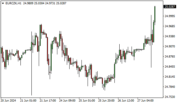 Vývoj měnového páru EUR/CZK (1hodinový graf - H1):
