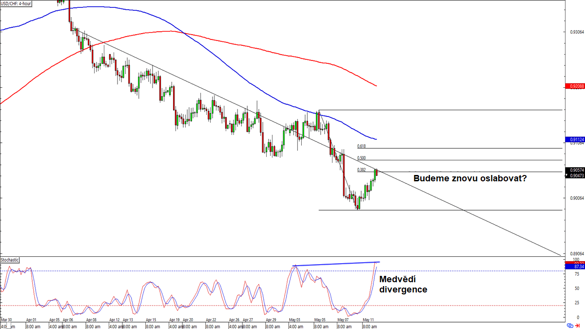 Vývoj měnového páru USD/CHF (4hodinový graf - H4):