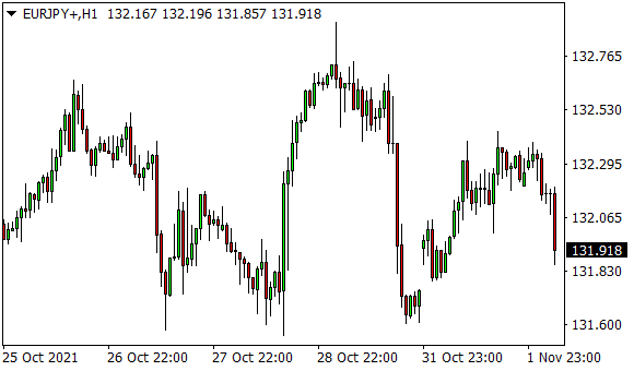 Vývoj měnového páru EUR/JPY (1hodinový graf - H1):