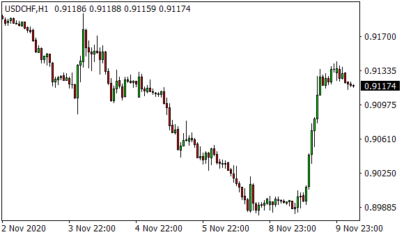 Vývoj měnového páru USD/CHF (1hodinový graf - H1):