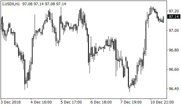 Vývoj dolarového indexu USDX (1hodinový graf - H1):