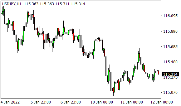 Vývoj měnového páru USD/JPY (1hodinový graf - H1):