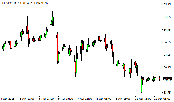 Vývoj dolarového indexu USDX (1hodinový graf – H1):