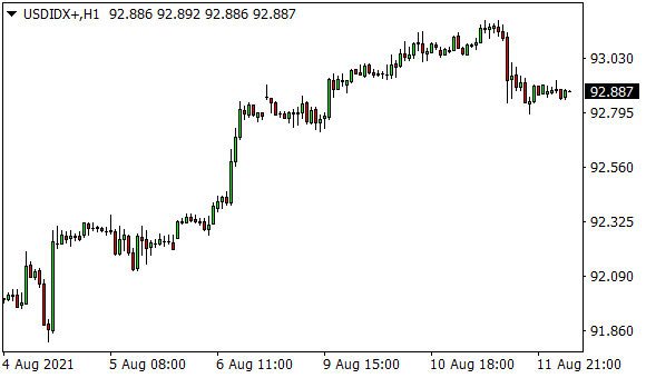 Vývoj dolarového indexu USDX (1hodinový graf - H1):