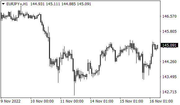 Vývoj měnového páru EUR/JPY (1hodinový graf - H1):