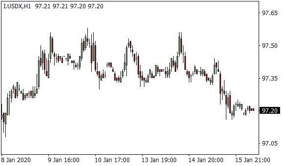 Vývoj dolarového indexu USDX (1hodinový graf - H1):