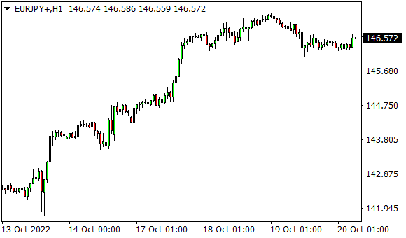 Vývoj měnového páru EUR/JPY (1hodinový graf - H1):