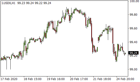 Vývoj dolarového indexu USDX (1hodinový graf - H1):