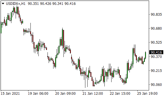Vývoj dolarového indexu USDX (1hodinový graf - H1):