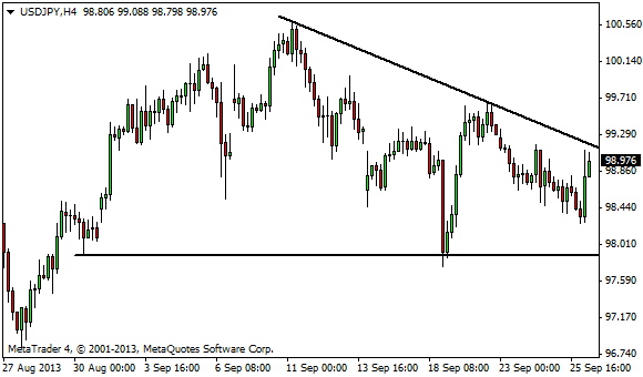 Vývoj měnového páru USD/JPY (4hodinový graf – H4):