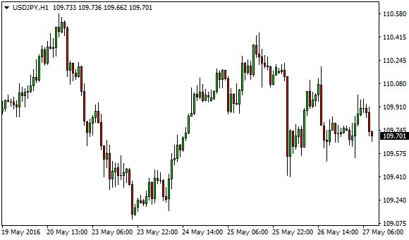 Vývoj měnového páru USD/JPY (1hodinový graf – H1):
