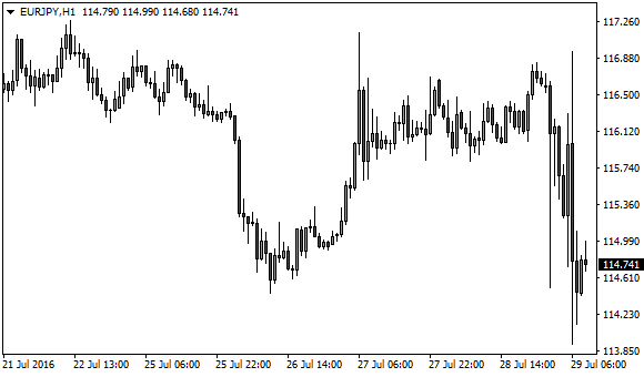 Vývoj měnového páru EUR/JPY (1hodinový graf – H1):