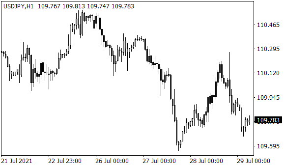 Vývoj měnového páru USD/JPY (1hodinový graf - H1):