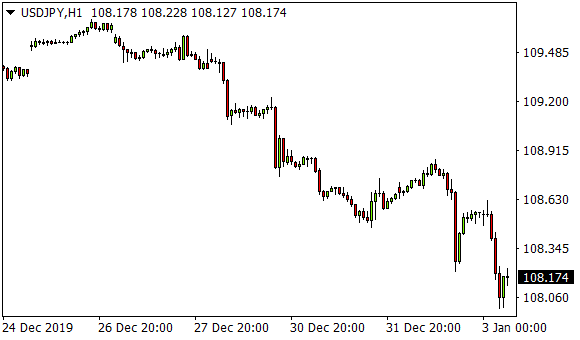 Vývoj měnového páru USD/JPY (1hodinový graf - H1):