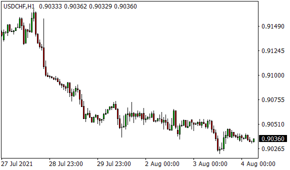 Vývoj měnového páru USD/CHF (1hodinový graf - H1):