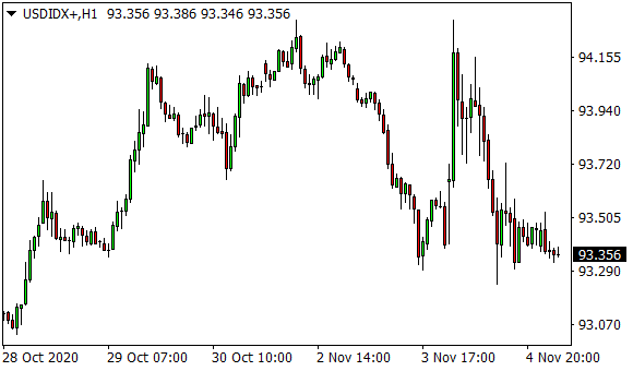 Vývoj dolarového indexu USDX (1hodinový graf - H1):