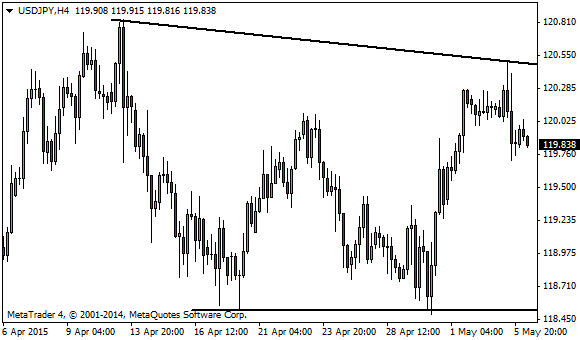 Vývoj měnového páru USD/JPY (4hodinový graf – H4):
