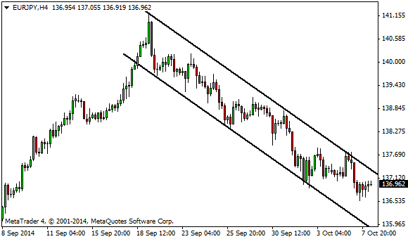 Vývoj měnového páru EUR/JPY (4hodinový graf – H4):