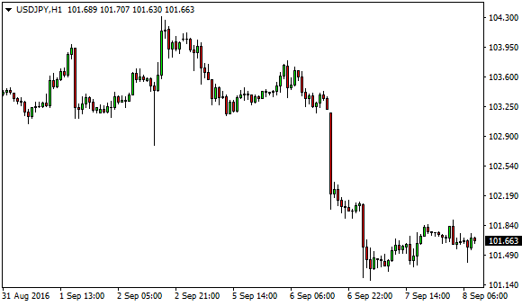 Vývoj měnového páru USD/JPY (1hodinový graf – H1):