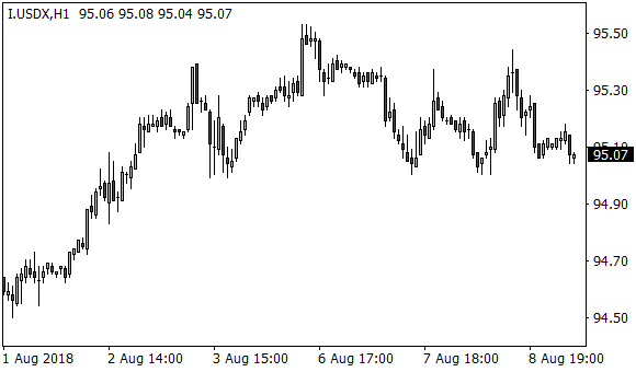 Vývoj dolarového indexu USDX (1hodinový graf - H1):