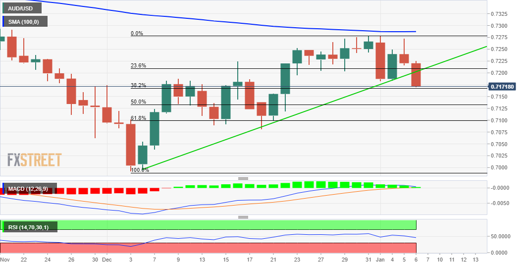 AUD/USD: Z technického hlediska 4hodinového grafu se pokles zastavil u rostoucí trendové čáry. Kupci mají ale zřejmě potíže s udržením této oblasti a případné prolomení by mohlo vyvolat pokles k hladině 0,7800. Další support je oblast konfluence klouzavého průměru SMA 100 a hladiny 50 % Fibonacciho retracementu u 0,7785. Prolomení této oblasti by aktivovalo prodejce a mohlo by to vyvolat pokles. Na druhé straně nejbližší rezistence je kolem 0,7855. Po proražení této oblasti bychom mohli otestovat oblast 0,7900 – 0,7910, což koresponduje s hladinou 23,6 % Fibonacciho retracementu a její proražení by přerušilo medvědí výhled. Pak bychom po překonání oblasti rezistence 0,7935 – 0,7940 mohli opět otestovat hladinu 0,8000. -