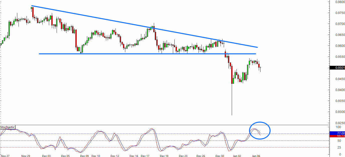 EUR/AUD: Tento měnový pár na 4hodinovém grafu otestoval úroveň 61,8 % Fibonacciho retracementu a nyní se zdá, že se odráží od této úrovně směrem vzhůru. Indikátor Stochastic současně vysílá přeprodané podmínky, což značí možnou vyčerpanost medvědů. Dočkáme se tak posílení zpět k vyšším hodnotám?