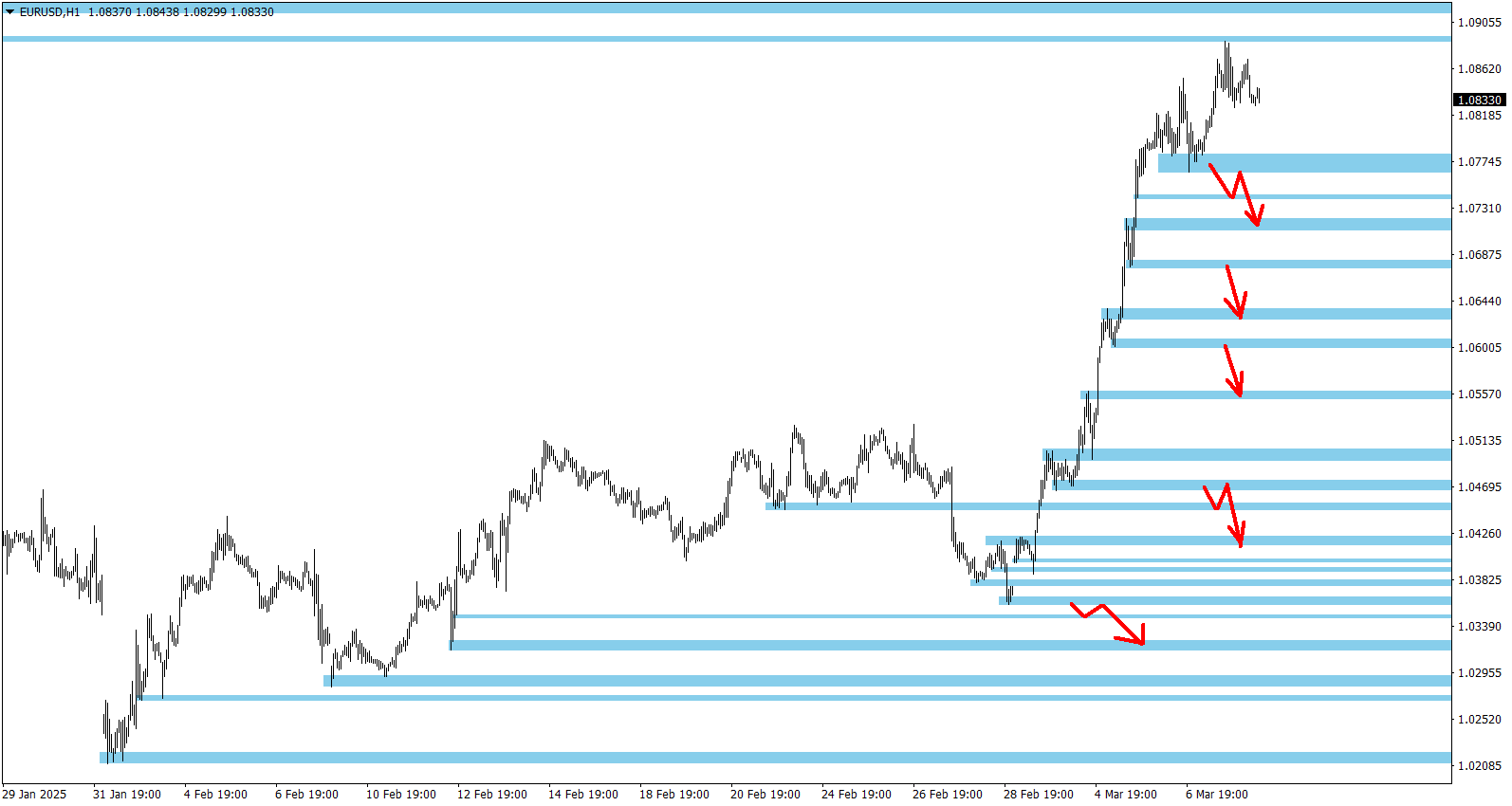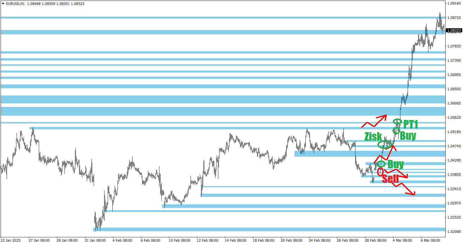 Minulý týden se velmi povedl! Díky víkendovému gapu, který způsobil Donald Trump zavedením cel na ostatní země, jsem ve svém týdenním komentáři uvedl, že budu obchodovat zaplnění tohoto gapu směrem nahoru. EUR/USD prolomil horní vstupní S/R zónu, což znamenalo vstup do nákupního (buy) obchodu, který velmi přesně došel do svého cíle (zaplnění gapu) a obchod tak skončil ve velmi slušném zisku. Pokud jste mého obchodu také využili ve svůj prospěch, tak vám gratuluji k profitu! -