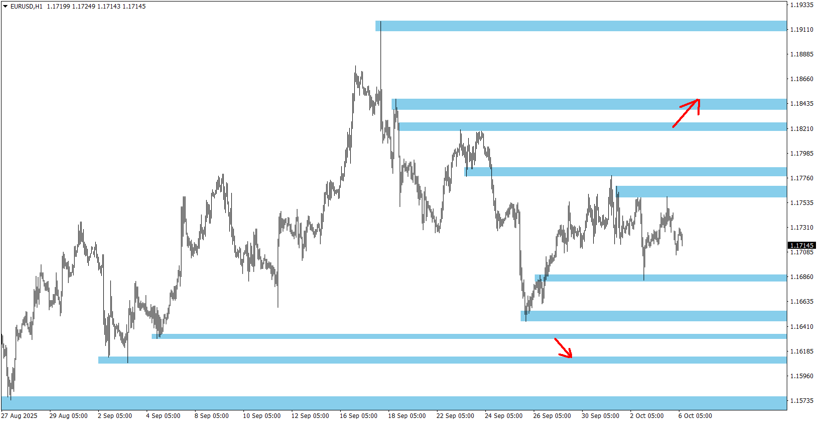 Níže na grafu najdete mé aktuální Price Action S/R úrovně pro H1 time-frame a také obchodní nastavení - vyznačené šipky, k jakým S/R zónám by trh mohl směřovat (po jejich prolomení daným směrem). Jsou to mé obchody, které plánuji obchodovat a vše uveřejňuji s předstihem v tomto mém komentáři. Jde o můj obchodní systém (Breakout strategie Ondřeje Hartmana), kde šipkami vždy dopředu upozorním na oblasti, které budu obchodovat čekajícími pokyny prolomením jedné S/R zóny (pokud dojde k aktivaci a prolomení) a pohyb k další nejbližší. Dlouhodobá úspěšnost strategie je 80 % a najdete zde mou historii za více než 15 let.