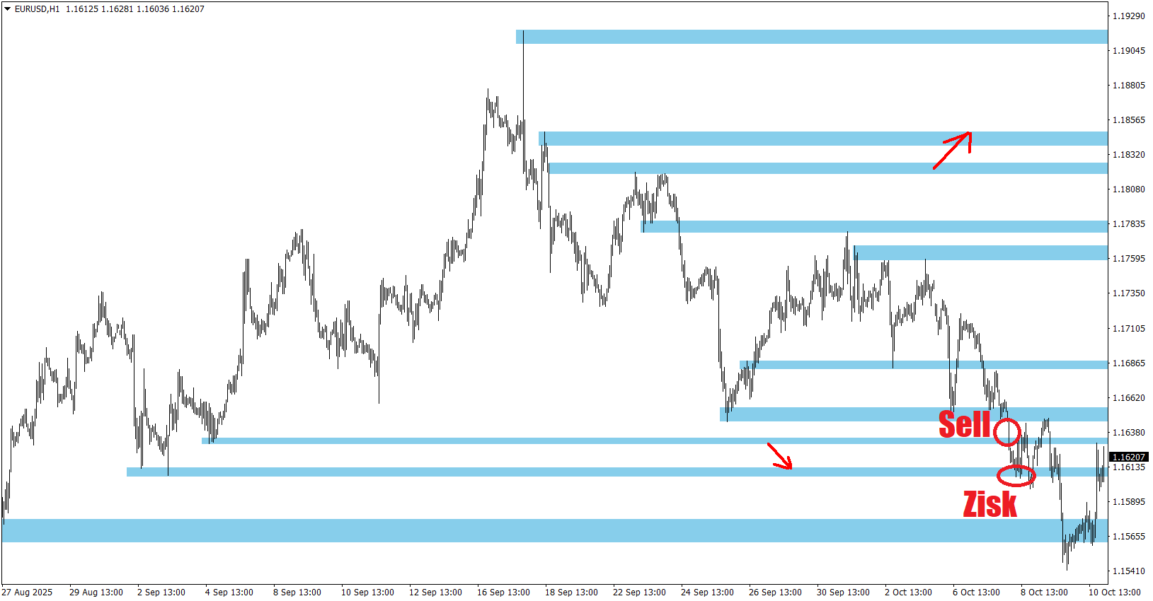 V minulém týdnu jsme se dočkali jednoho obchodu podle mého týdenního komentáře. Trh totiž prolomil spodní vstupní S/R zónu, čímž došlo ke vstupu do prodejní (sell) pozice, která se následně dostala do svého cíle a obchod tak byl ukončen v zisku na Take-Profitu (TP). Pokud jste mého obchodu využili ve svůj prospěch, tak vám gratuluji k zisku!