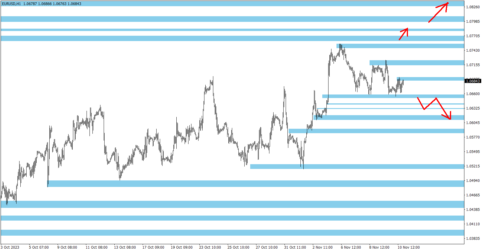 Níže na grafu najdete mé aktuální Price Action S/R úrovně pro H1 time-frame a také obchodní nastavení - vyznačené šipky, k jakým S/R zónám by trh mohl směřovat (po jejich prolomení daným směrem). Jsou to mé obchody, které plánuji obchodovat a vše uveřejňuji s předstihem v tomto mém komentáři. Jde o můj obchodní systém (Breakout strategie Ondřeje Hartmana), kde šipkami vždy dopředu upozorním na oblasti, které budu obchodovat čekajícími pokyny prolomením jedné S/R zóny (pokud dojde k aktivaci a prolomení) a pohyb k další nejbližší. Dlouhodobá úspěšnost strategie je 80 % a najdete zde mou historii za více než 15 let.