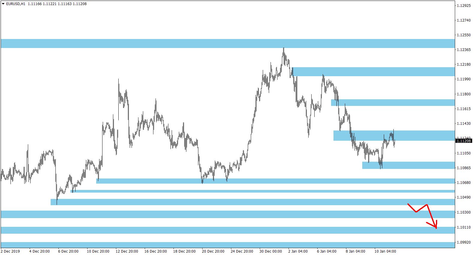 Nastavení mých S/R úrovní na měnovém páru EUR/USD (1hodinový graf – H1):