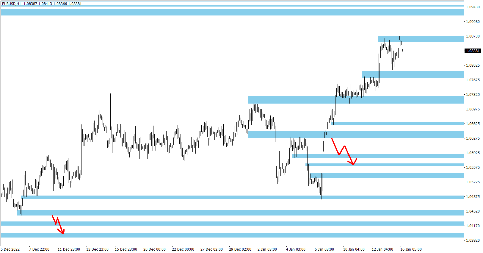Níže na grafu najdete mé aktuální Price Action S/R úrovně pro H1 time-frame a také obchodní nastavení - vyznačené šipky, k jakým S/R zónám by trh mohl směřovat (po jejich prolomení daným směrem). Jsou to mé obchody, které plánuji obchodovat a vše uveřejňuji s předstihem v tomto mém komentáři. Jde o můj obchodní systém (Breakout strategie Ondřeje Hartmana), kde šipkami vždy dopředu upozorním na oblasti, které budu obchodovat čekajícími pokyny prolomením jedné S/R zóny (pokud dojde k aktivaci a prolomení) a pohyb k další nejbližší. Dlouhodobá úspěšnost strategie je 80 % a najdete zde mou historii za více než 10 let.