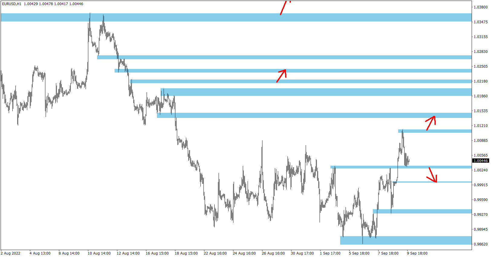Níže na grafu najdete mé aktuální Price Action S/R úrovně pro H1 time-frame a také obchodní nastavení - vyznačené šipky, k jakým S/R zónám by trh mohl směřovat (po jejich prolomení daným směrem). Jsou to mé obchody, které plánuji obchodovat a vše uveřejňuji s předstihem v tomto mém komentáři. Jde o můj obchodní systém (Breakout strategie Ondřeje Hartmana), kde šipkami vždy dopředu upozorním na oblasti, které budu obchodovat čekajícími pokyny prolomením jedné S/R zóny (pokud dojde k aktivaci a prolomení) a pohyb k další nejbližší. Dlouhodobá úspěšnost strategie je 80 % a najdete zde mou historii za více než 10 let.