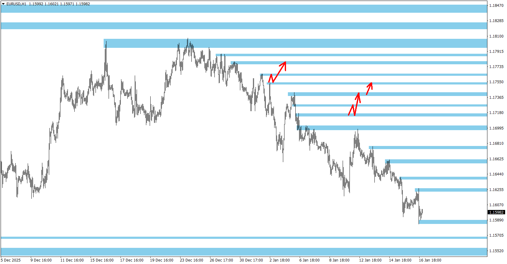 Níže na grafu najdete mé aktuální Price Action S/R úrovně pro H1 time-frame a také obchodní nastavení - vyznačené šipky, k jakým S/R zónám by trh mohl směřovat (po jejich prolomení daným směrem). Jsou to mé obchody, které plánuji obchodovat a vše uveřejňuji s předstihem v tomto mém komentáři. Jde o můj obchodní systém (Breakout strategie Ondřeje Hartmana), kde šipkami vždy dopředu upozorním na oblasti, které budu obchodovat čekajícími pokyny prolomením jedné S/R zóny (pokud dojde k aktivaci a prolomení) a pohyb k další nejbližší. Dlouhodobá úspěšnost strategie je 80 % a najdete zde mou historii za více než 15 let.