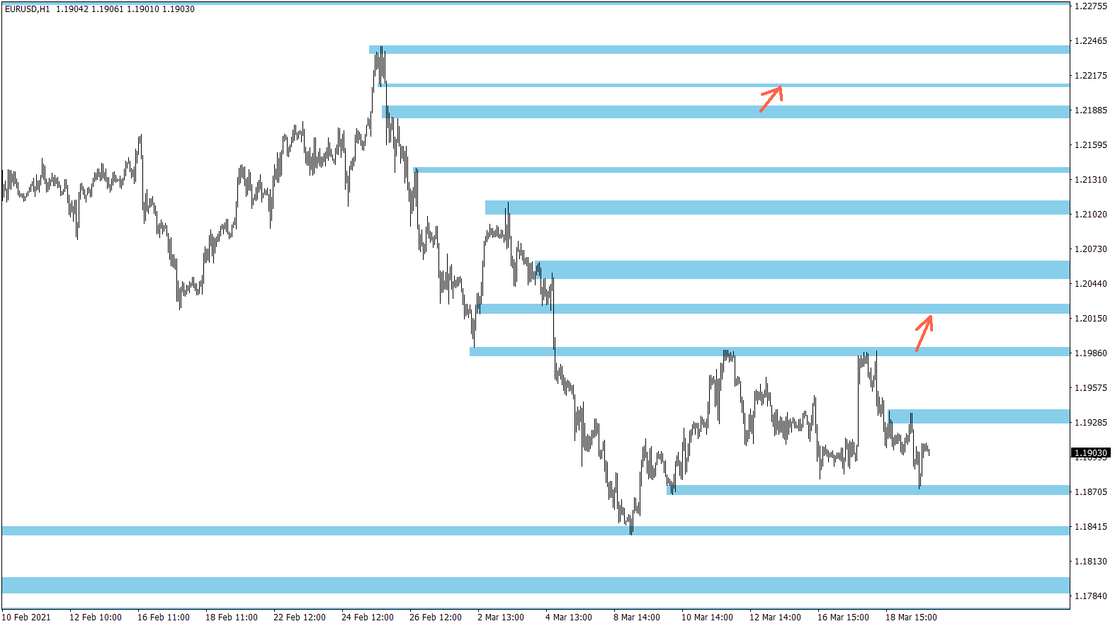 Nastavení mých S/R úrovní na měnovém páru EUR/USD (1hodinový graf – H1):