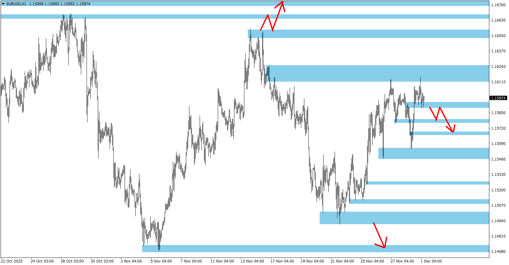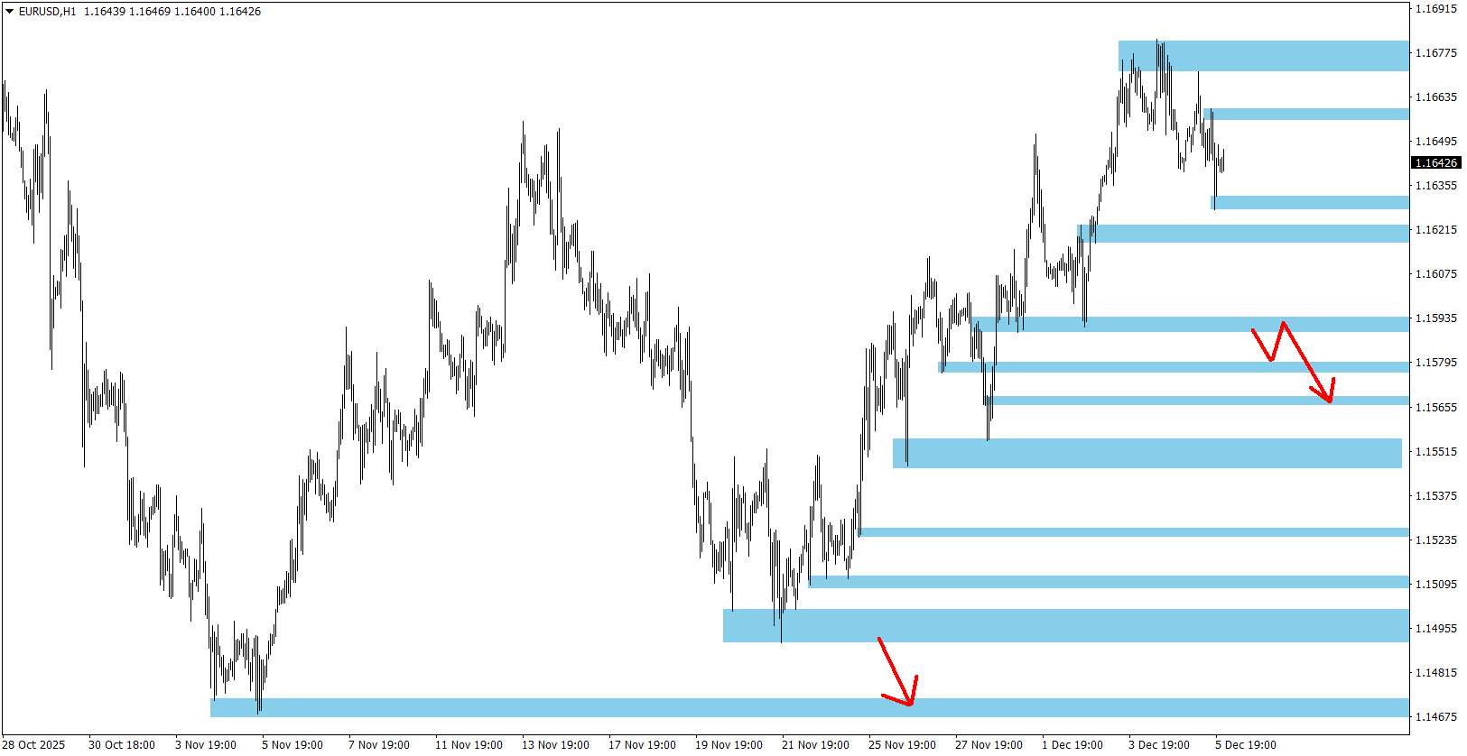 Níže na grafu najdete mé aktuální Price Action S/R úrovně pro H1 time-frame a také obchodní nastavení - vyznačené šipky, k jakým S/R zónám by trh mohl směřovat (po jejich prolomení daným směrem). Jsou to mé obchody, které plánuji obchodovat a vše uveřejňuji s předstihem v tomto mém komentáři. Jde o můj obchodní systém (Breakout strategie Ondřeje Hartmana), kde šipkami vždy dopředu upozorním na oblasti, které budu obchodovat čekajícími pokyny prolomením jedné S/R zóny (pokud dojde k aktivaci a prolomení) a pohyb k další nejbližší. Dlouhodobá úspěšnost strategie je 80 % a najdete zde mou historii za více než 15 let.