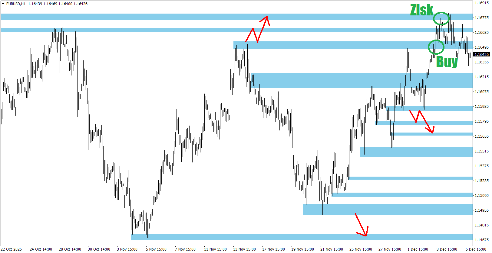 Minulý týden jsme se dočkali dvou obchodů na měnovém páru EUR/USD podle mého týdenního komentáře. Trh prolomil první vstupní S/R zónu, čímž došlo ke vstupu do nákupní (buy) pozice, kde se trh dostal k svému prvními cíli a byla ukončena první část pozice. Zbytek obchodu skončilo na Break/Even. Následně došlo ke vstupu (prolomení druhé vstupní S/R zóny) do dalšího buy obchodu, který se již velmi přesně dostal do svého cíle a byl ukončen na profitu. Pokud jste mých obchodů využili ve svůj prospěch, tak gratuluji k zisku! -