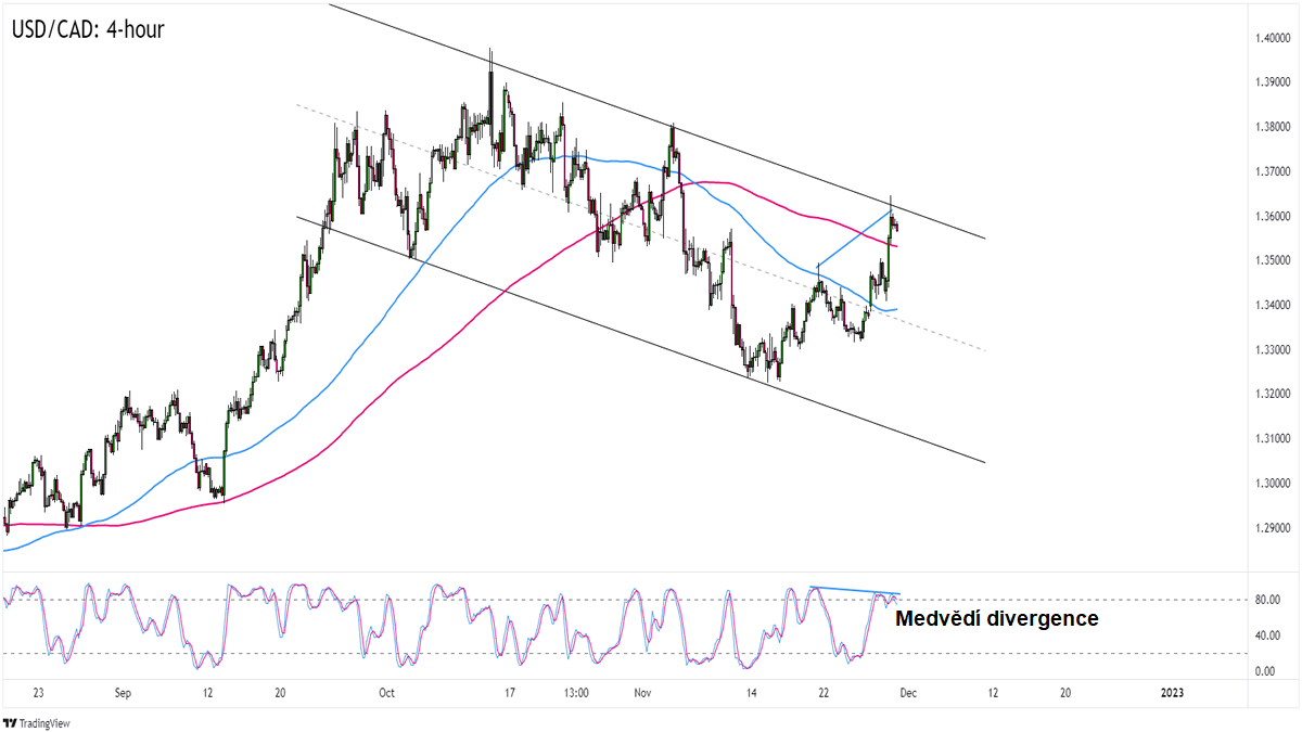 Forex: USD/CAD se obchoduje v klesajícím trendovém kanálu