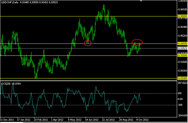 Měnový pár USD/CHF aktuálně překonal rezistenci na 0,9328. -