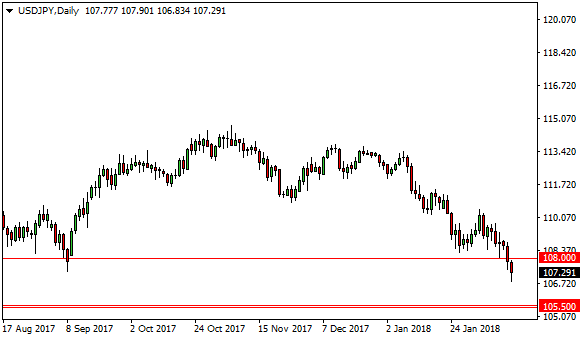 Analytici se domnívají, že průraz pod hladinu 108,00 otevřel výrazný potenciál k dalšímu poklesu a to směrem k oblasti 105,60 - 105,50.