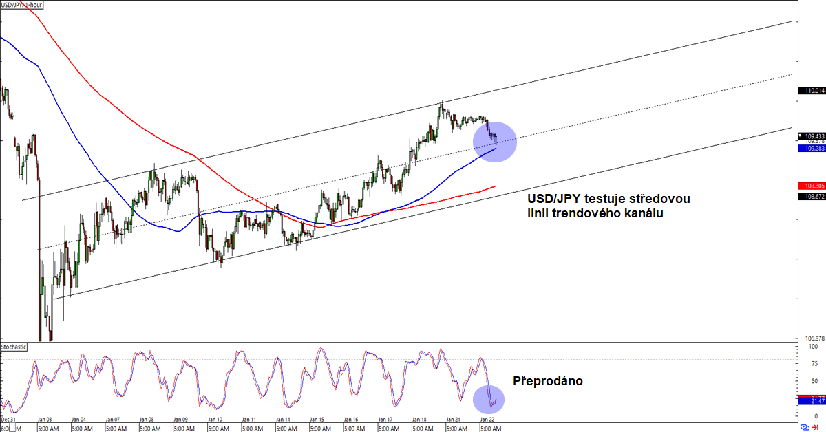 Forex: USD/JPY testuje středovou linii trendového kanálu