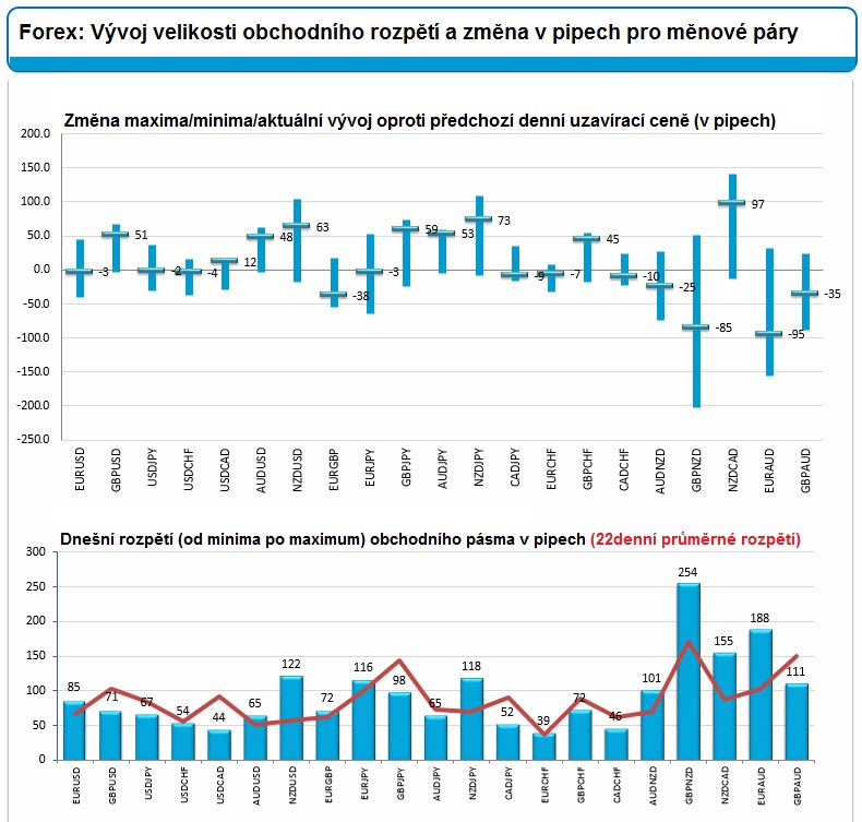 Forex: Vítězové a poražení 13.4.2018 Většina měnových párů se dnes nachází pod svým 22denním průměrným rozpětím. Na svůj průměr dosahují pouze měnové páry AUD/JPY a EUR/AUD.