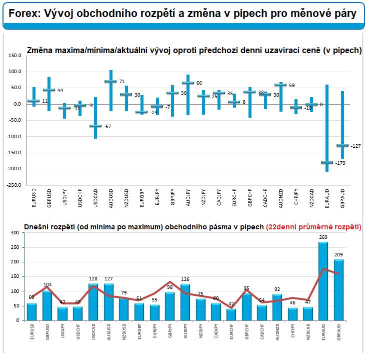 Forex: Vítězové a poražení 16.10.2018 Většina měnových párů se dnes nachází pod svým 22denním průměrným rozpětím. Nejvýrazněji svůj průměr dnes překračuje měnový pár AUD/NZD.