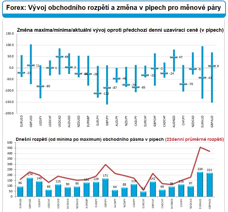 Forex: Vítězové a poražení 27.2.2018 Měnové páry se dnes bez výjimky nachází pod svým 22denním průměrným rozpětím. Volatilita je tak na snížené úrovni.