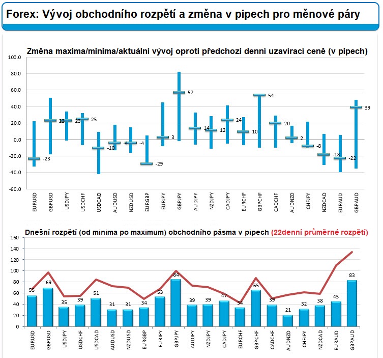 Forex: Vítězové a poražení 3.3.2017 Většina měnových párů se dnes nachází pod svým 22denním průměrným rozpětím. Své průměrné rozpětí dnes atakují pouze měnové páry EUR/GBP, EUR/CHF a EUR/AUD.
